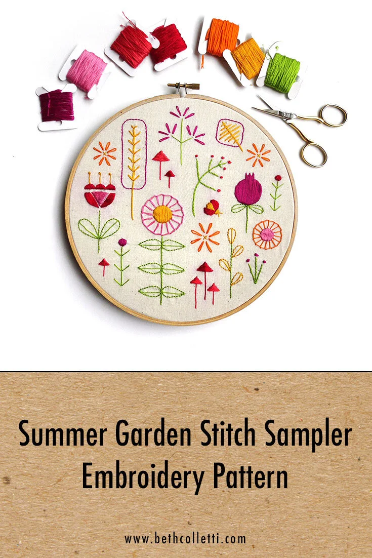 Summer Garden Stitch Sampler Embroidery Pattern