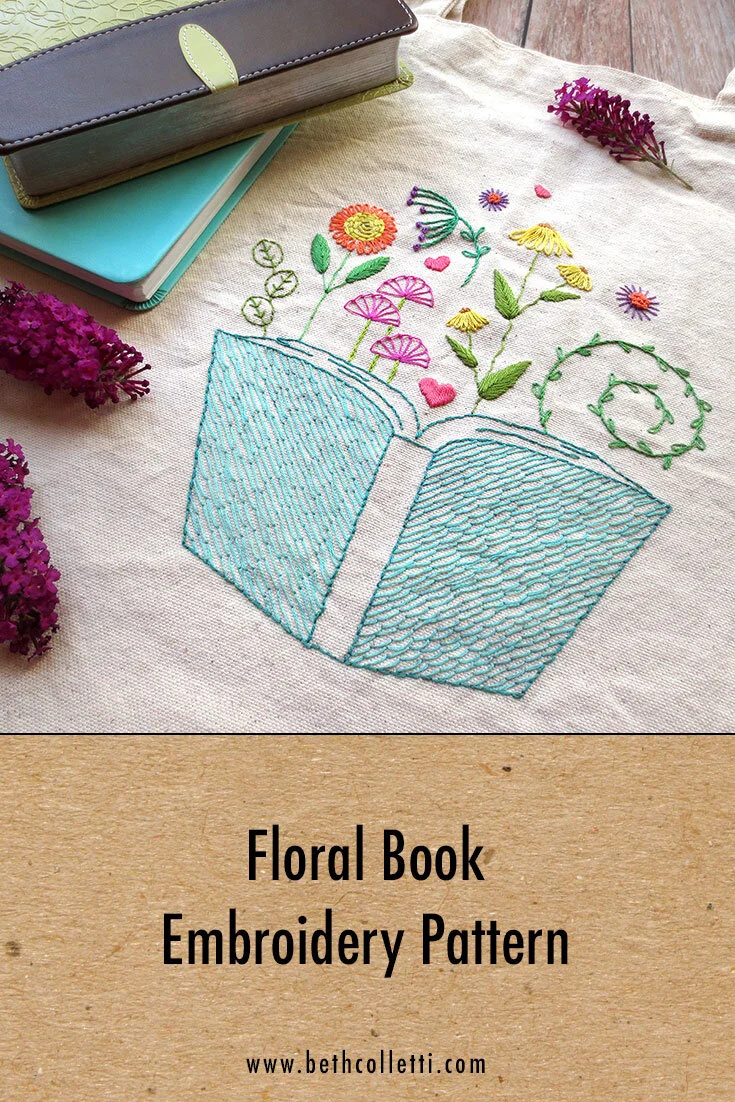 If you’re a fan of summer reading and embroidery, this floral book embroidery pattern is for you! Stitch it up to display in a reading nook, or embroider a tote bag to transport your beach reading materials.