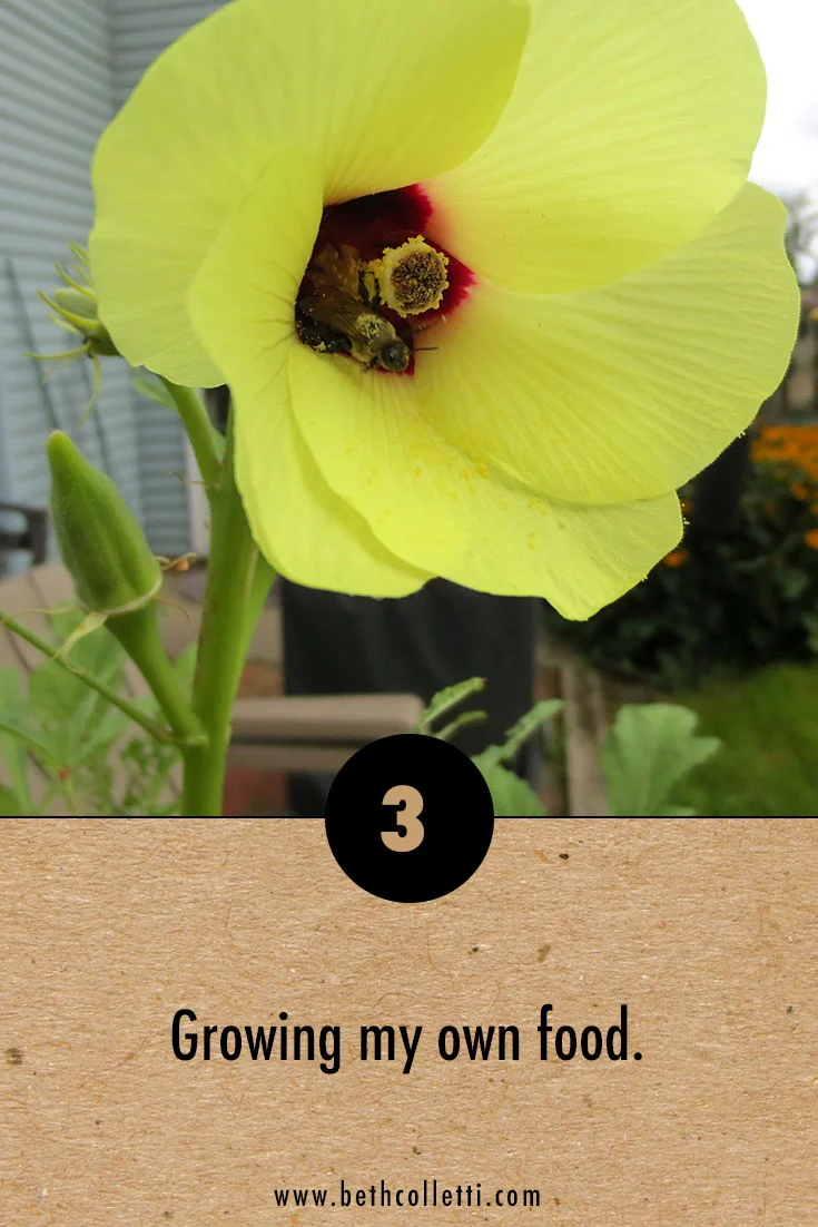 Okra might not be my favorite veggie, but it's good in gumbo and the flowers are beautiful!