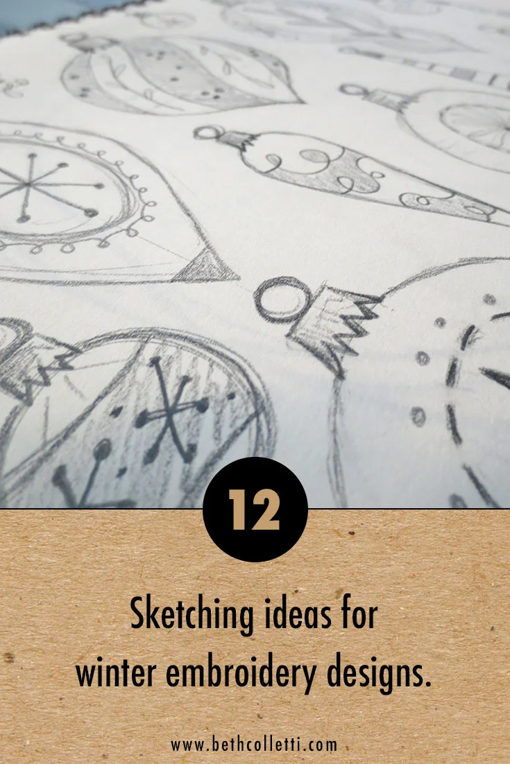 I find it difficult to think of wintry designs when it’s the dog days of summer, but I’m making time to brainstorm and doodle in my sketchbooks before I pick finals for new patterns and kits. Sneak peeks to come!