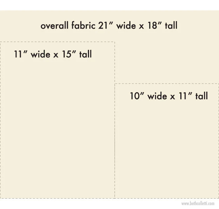 From the beige fat quarter cut a piece of fabric 10” wide x 11” tall and another piece 11” wide x 15” tall.