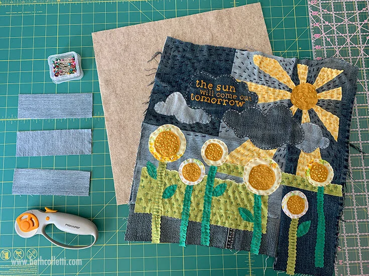 Note: If you don’t have a sewing machine, you can hand-sew your backing fabric to your finished boro art using a blanket stitch. See step 3 for more details.