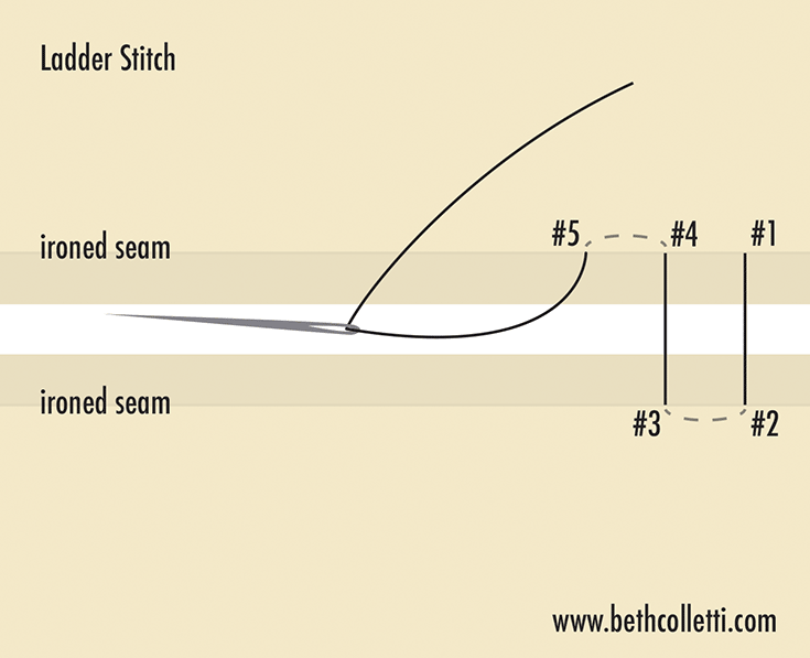 Next I proceeded to fold the remaining raw edges of the bottom of my piece (both the front and back fabric) toward the inside of the “pocket” I created and pinned them together (you can iron the seam if necessary). Finally, using a small embroidery needle and fine cotton thread, I stitched the bottom of my project closed using a ladder stitch, hiding the stitches nicely.