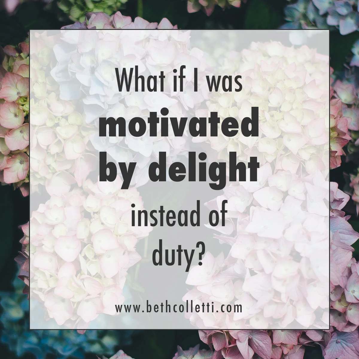 Certainly there are things I need to do… like paying taxes. But for the shoulds, what if I was motivated by delight instead of duty? What if I saw the gift of each thing and let my joy in that blessing propel me forward? And if something really is feeling like the heaviness of duty instead of the richness of delight, why is that? I’m finding it’s worth leaning into that question and making room for quiet so I can answer it honestly. Maybe those duties are things I can let go of. And if not, I’m challenged to discover the gifts in them.