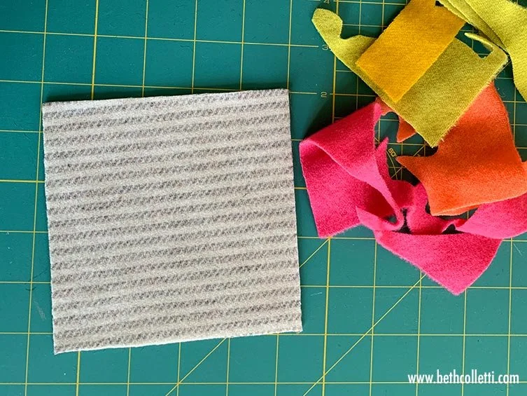 Felt shapes can be appliquéd on all different types of background fabric from denim to quilters cotton to linen. However, if you want to use a reverse appliqué technique and cut shapes out of your background, it’s helpful to use felt fabric because it won’t fray.
