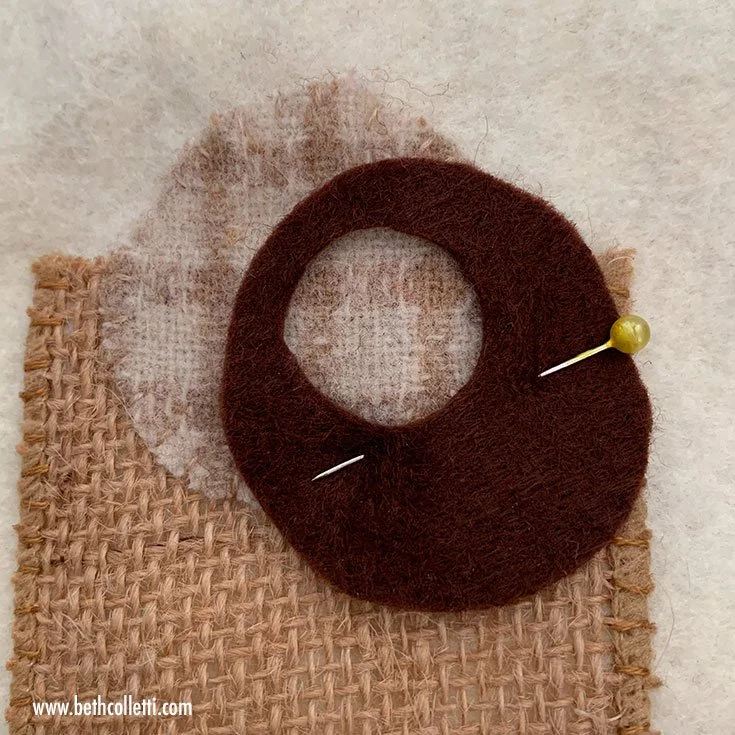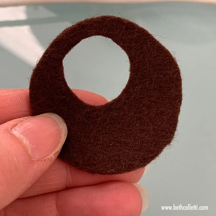 In my example below, I cut a circular hole out of a larger circle and layered it to allow the felt shapes underneath to show through.