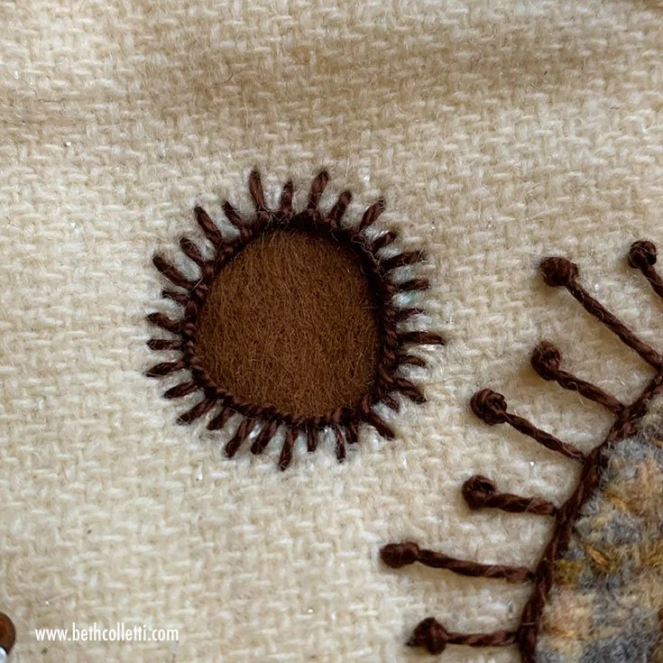 Add texture to the flowers with french knots, cross stitches or seed stitches.
