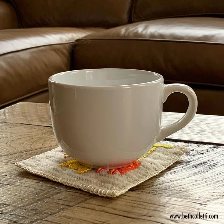 Ta-da! Your mug rug is now ready to use with your favorite beverage!