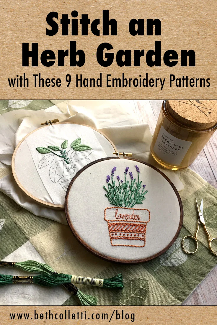 My love for gardening and growing herbs was a huge influence on my latest collection of downloadable embroidery patterns. In the past I’ve shared about how planting herbs makes for a great starter garden, especially if you enjoy cooking.