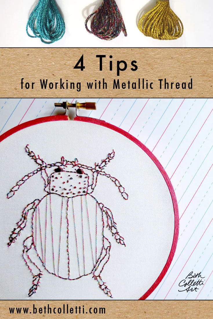 In spite of requiring extra patience, working with metallic embroidery floss can add a luxurious feel to your work, or simply add subtle vibrancy to your embroidery details. Here are a few tips for embroidering with it…