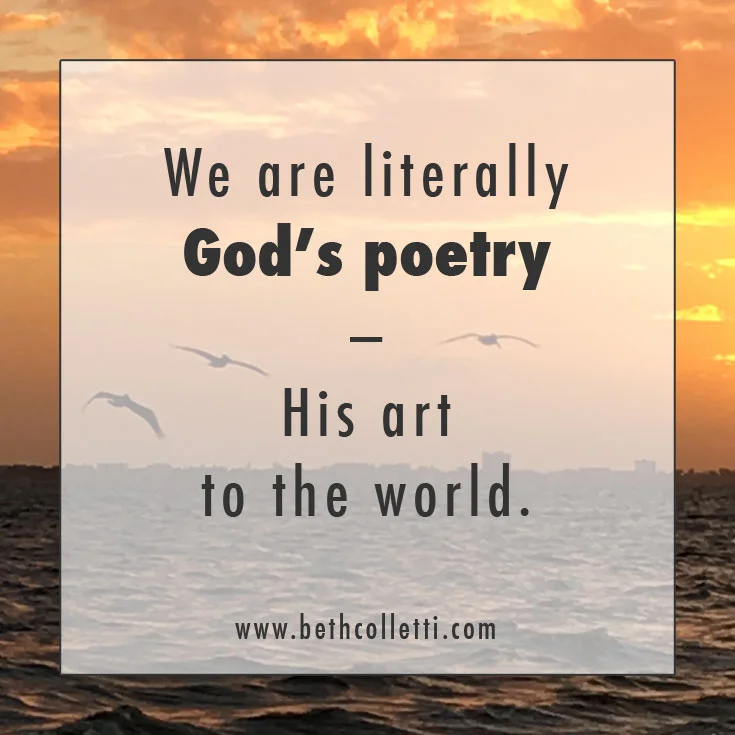 Each of us is a unique, one-of-a-kind creation. Scripture tells us that God knit us together in our mothers’ wombs and that we are awesomely, distinctly and wonderfully made. (Psalm 139:14-15) Another verse says we are God’s workmanship (Ephesians 2:10). The original Greek for “workmanship” is poiema, where the word poem comes from.